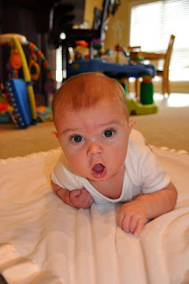 *SIGH* Already...my baby is 5 months old. 5 months! The time has gone by WAY too fast for this Mama's liking! It doesn't help that the boy is a giant. He's been such a love lately though. He had a bad case of croup this past week, which he's still recovering from. So we've spent a lot of time snuggling (and being in a steamy shower then outside in the cold due to the cold snap). K's about 28" now and weighing right at 17lbs.